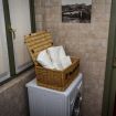 Bagno con doccia fornito di dispenser con shampo e bagnoschiuma,kit completo ascigamani,ampio lavabo e bidet;una camera matrimoniale con armadio guardaroba a cinque ante.