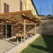 Al piano basso troviamo un ampio giardino condomiale,comune a tutti e tre gli appartamenti,dotato di tavoli per pranzare/cenare fuori,zona con prato e sdraio dove potersi risposare,zona BBQ in muratura.